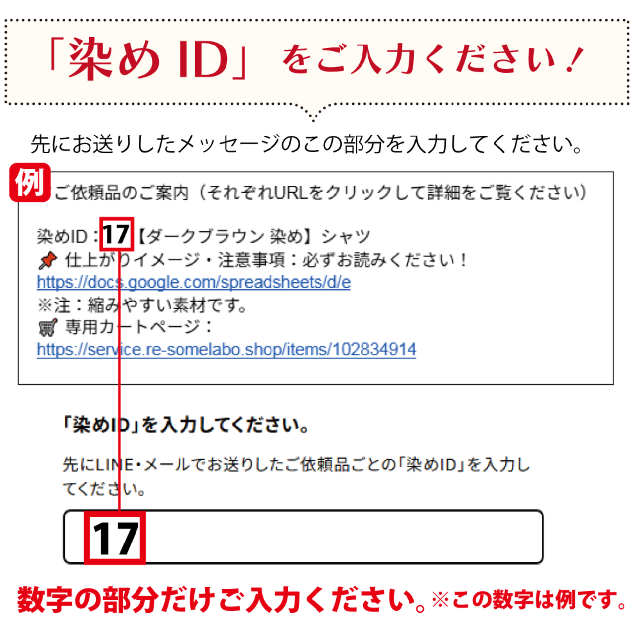 お客様の依頼をソメラボで「染め直す」サービスです。