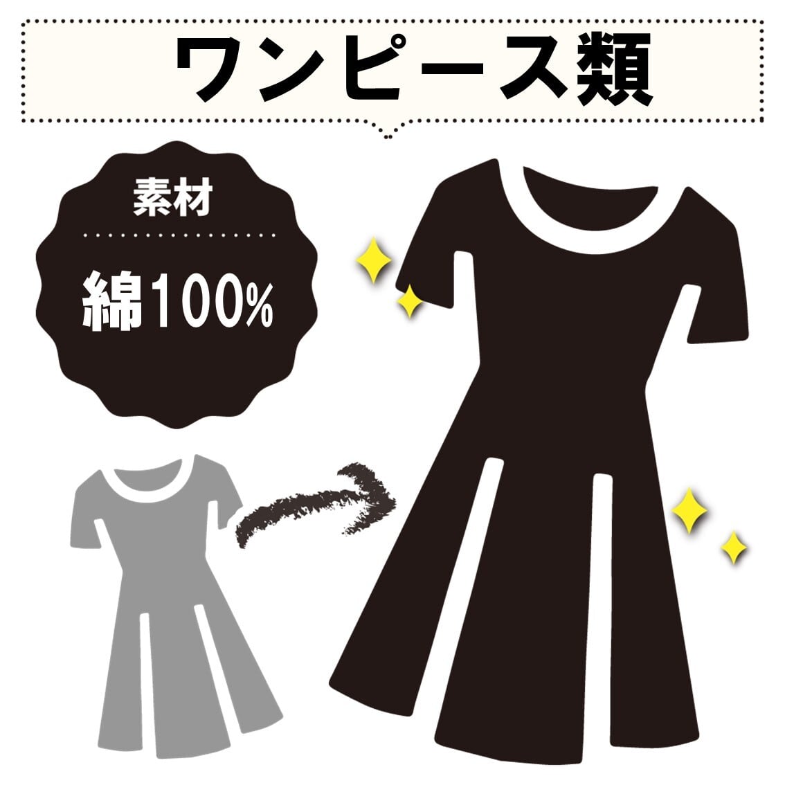 ※表面積の大きいワンピース類はプレスなどの仕上げ工程数が多いため追加料金「1,500円」が発生します。ご了承ください。