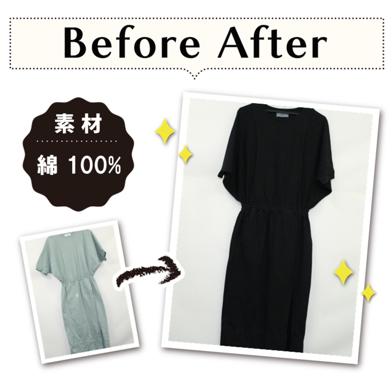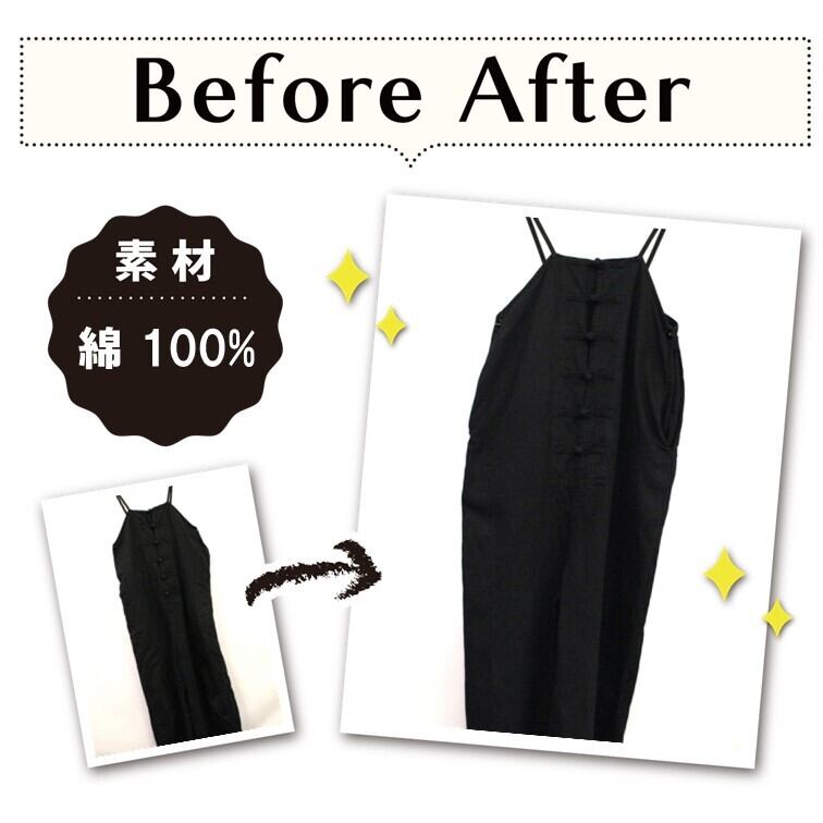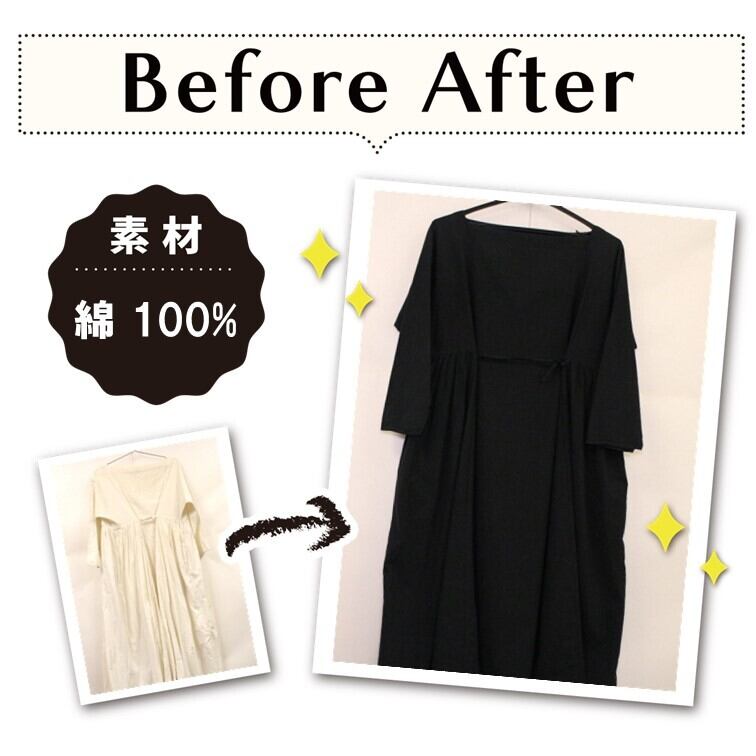 綿100% 黒染め ワンピース-染め直し[漆黒/Black]m306-018