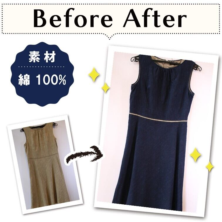 綿100% 濃紺染め ワンピース【裏地PL100 /元色:白】-染め直し[ネイビー/Navy]m309-041