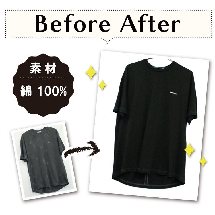 綿100% 黒染め Tシャツ【色あせ/ブランドタグ/元色:黒】-染め直し[漆黒/Black]m309-109