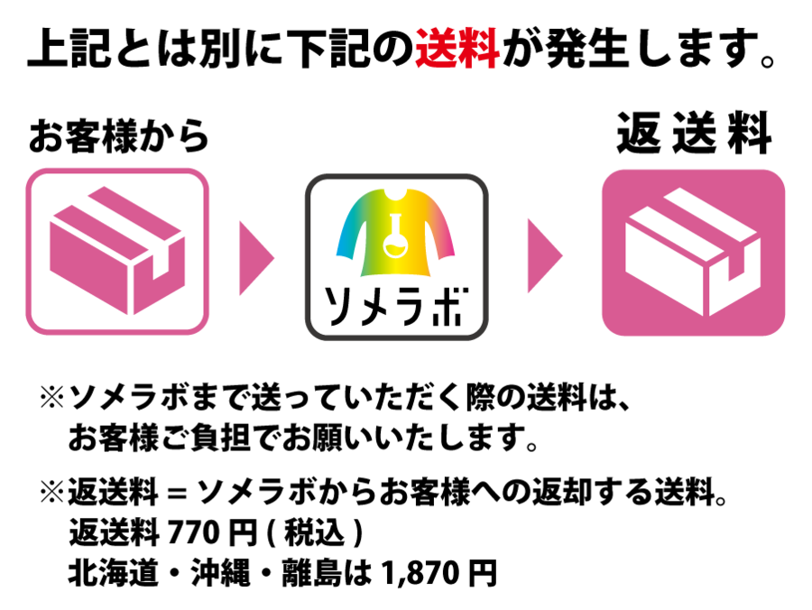 カート内の「送料」はソメラボからお客様への返送時の送料になります。