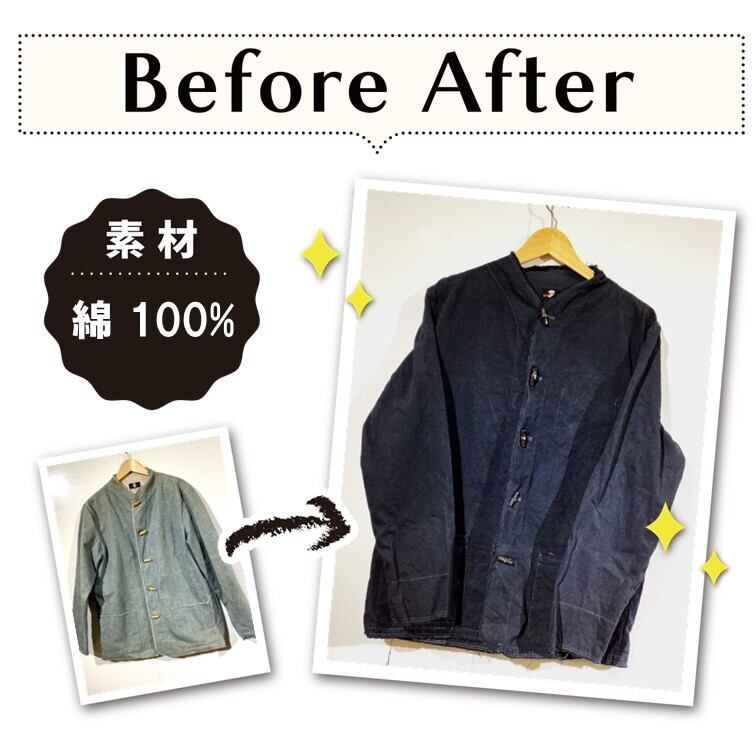 綿100% 黒染め ブルゾン【色褪せ/金属部品/元色:黒】-染め直し[漆黒/Black]m310-182