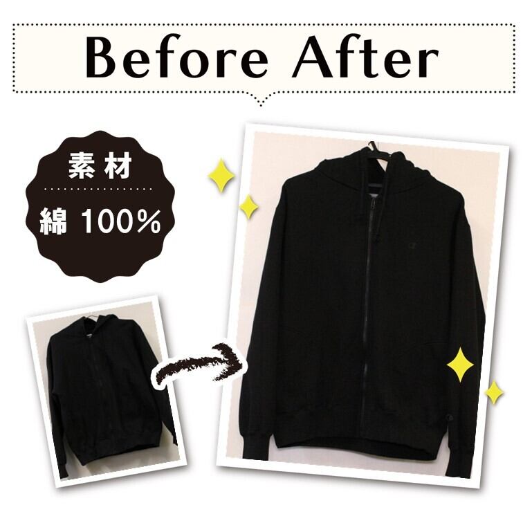 綿100% 黒染め パーカー 【 - 強い色あせ】 -染め直し[漆黒 - Black]311-0495