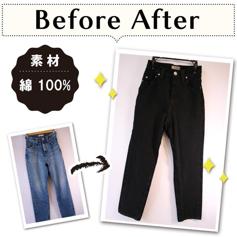 綿90%以上+ポリウレタン 黒染め ジーンズ 【元色:デニム(Blue) - 色あせあり】 -染め直し[漆黒 - Black]401-0085