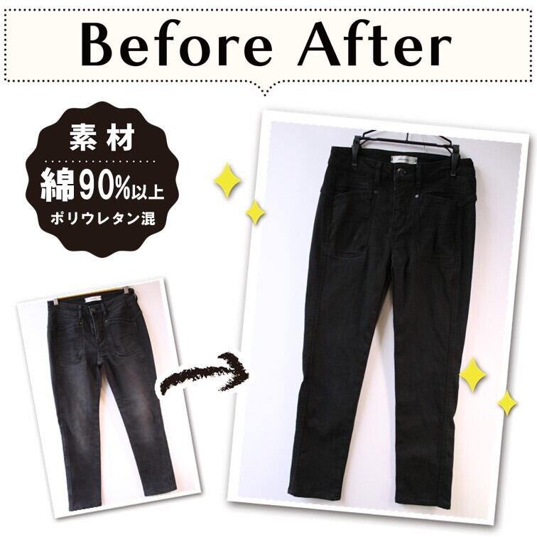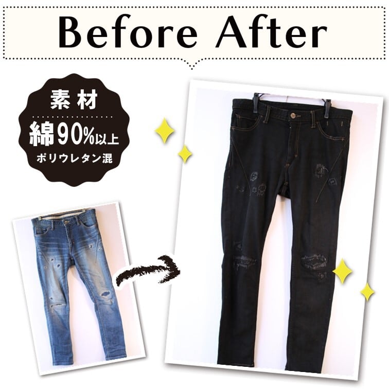 綿90%以上+合成繊維 黒染め ジーンズ 【元色:デニム(Black) - 色あせあり】 -染め直し[漆黒 - Black]401-0138