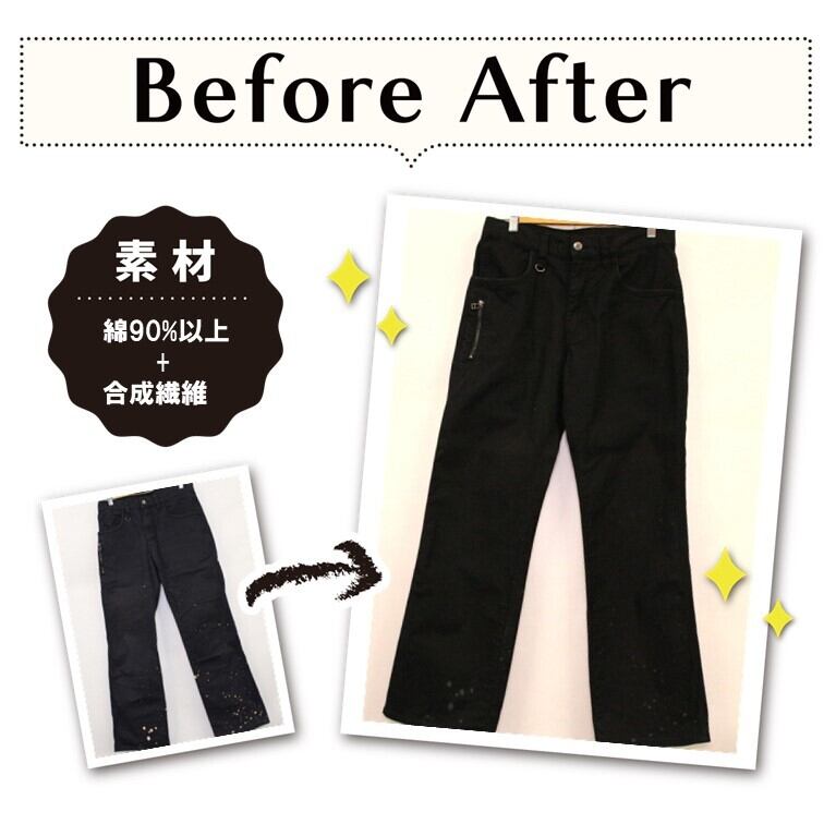 綿90%以上+ポリウレタン 黒染め パンツ 【元色:黒 - 色あせあり】 -染め直し[漆黒 - Black]404-0162