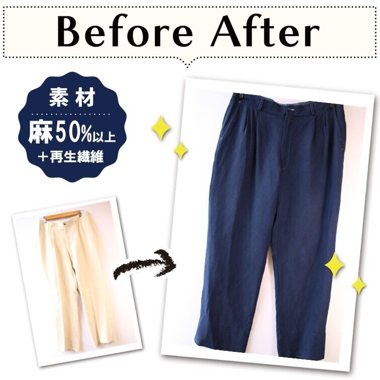 綿50%以上+麻 濃紺染め パンツ 【元色:紺(Navy)】 -染め直し[ネイビー - Navy]405-0021