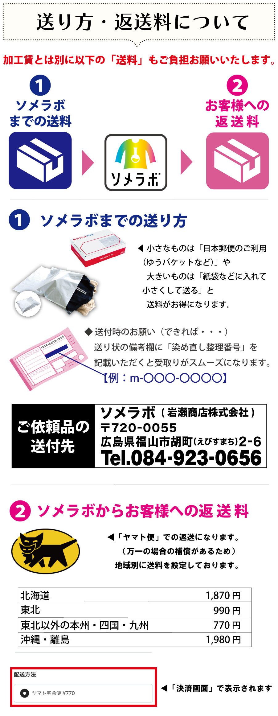 お客様の依頼をソメラボで「染め直す」サービスです。