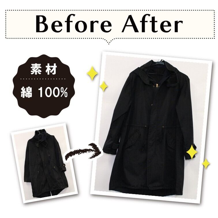 綿100% 黒染め コート 【元色:紺(Navy) - 色あせあり】 -染め直し[漆黒 - Black]411-0106