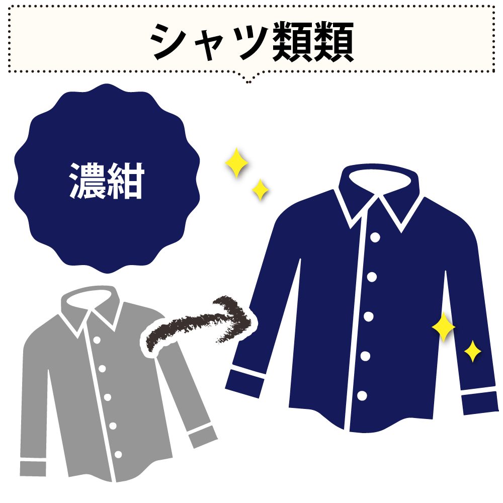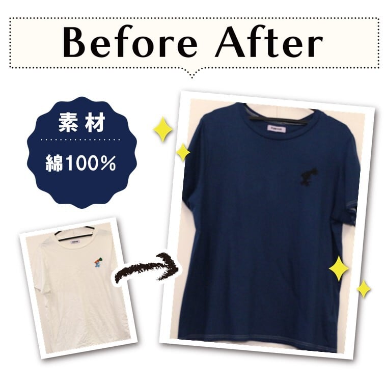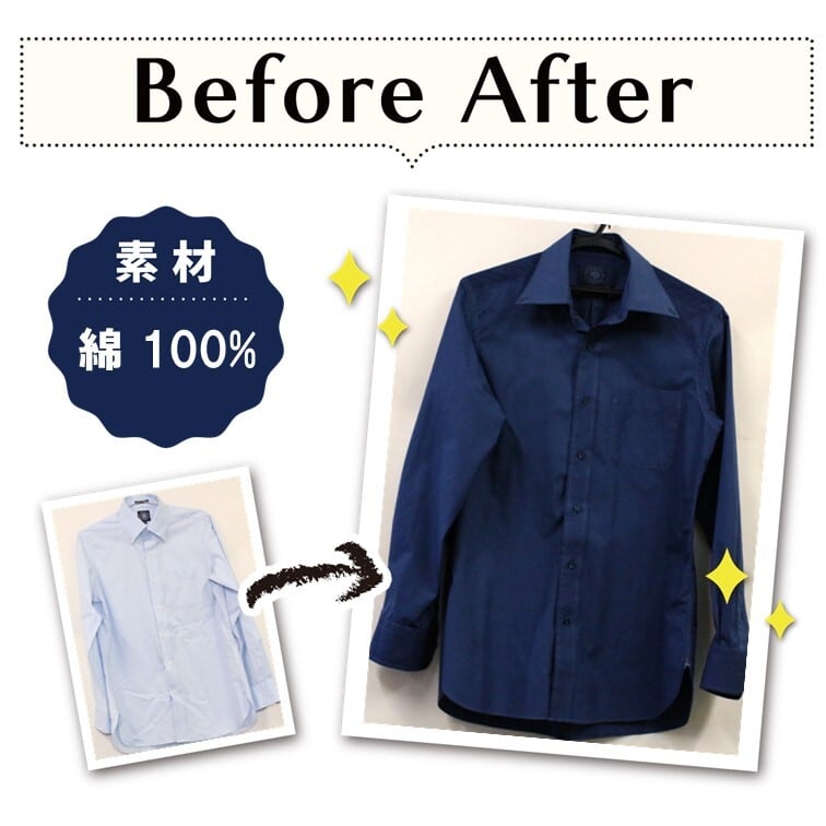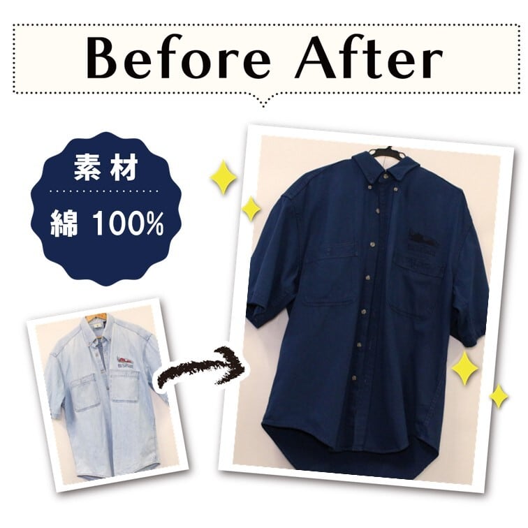 ※シャツ類は染料・薬剤の使用量、後工程数が増えるため追加料金「500円」が発生します。ご了承ください。