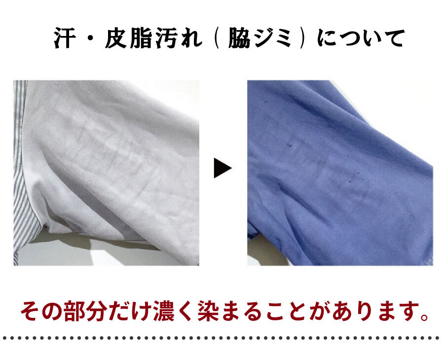 ※シャツ類は染料・薬剤の使用量、後工程数が増えるため追加料金「500円」が発生します。ご了承ください。